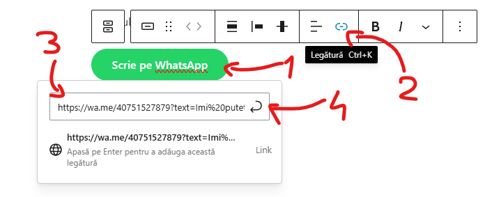 Acum poți pune link către numărul tău de WhatsApp oriunde dorești pe website-ul tău!